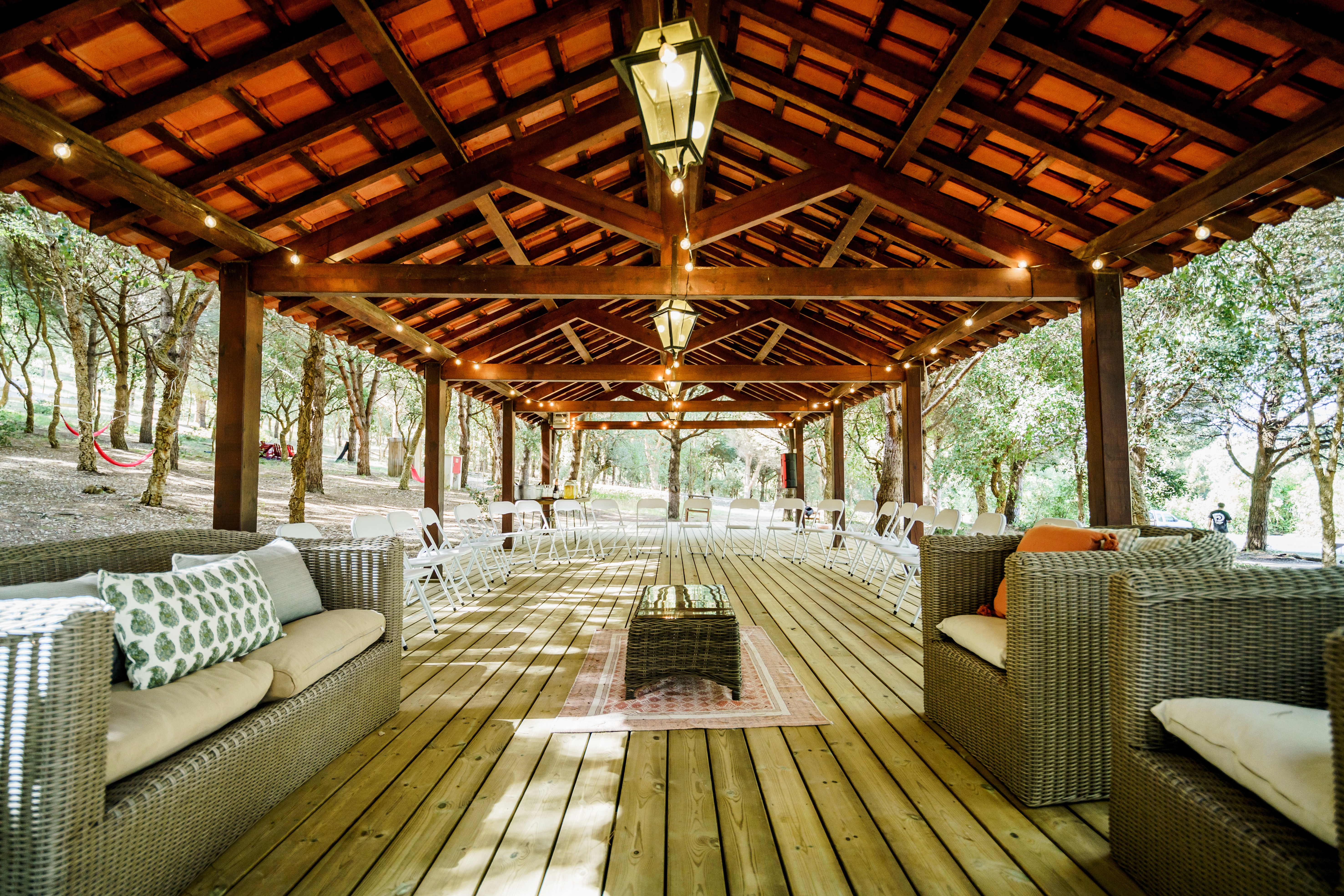 Cribs on request. Shallow pool areas, forest paths, swings, and kids activities.